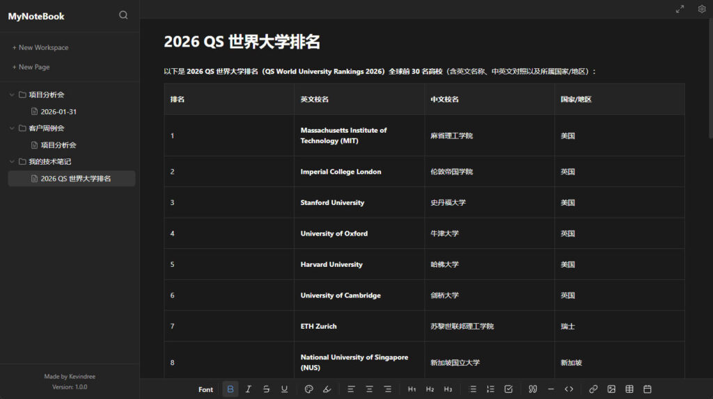 MyNoteBook is a personal knowledge application designed to capture your thoughts, notes, and ideas in a simple and organized way.